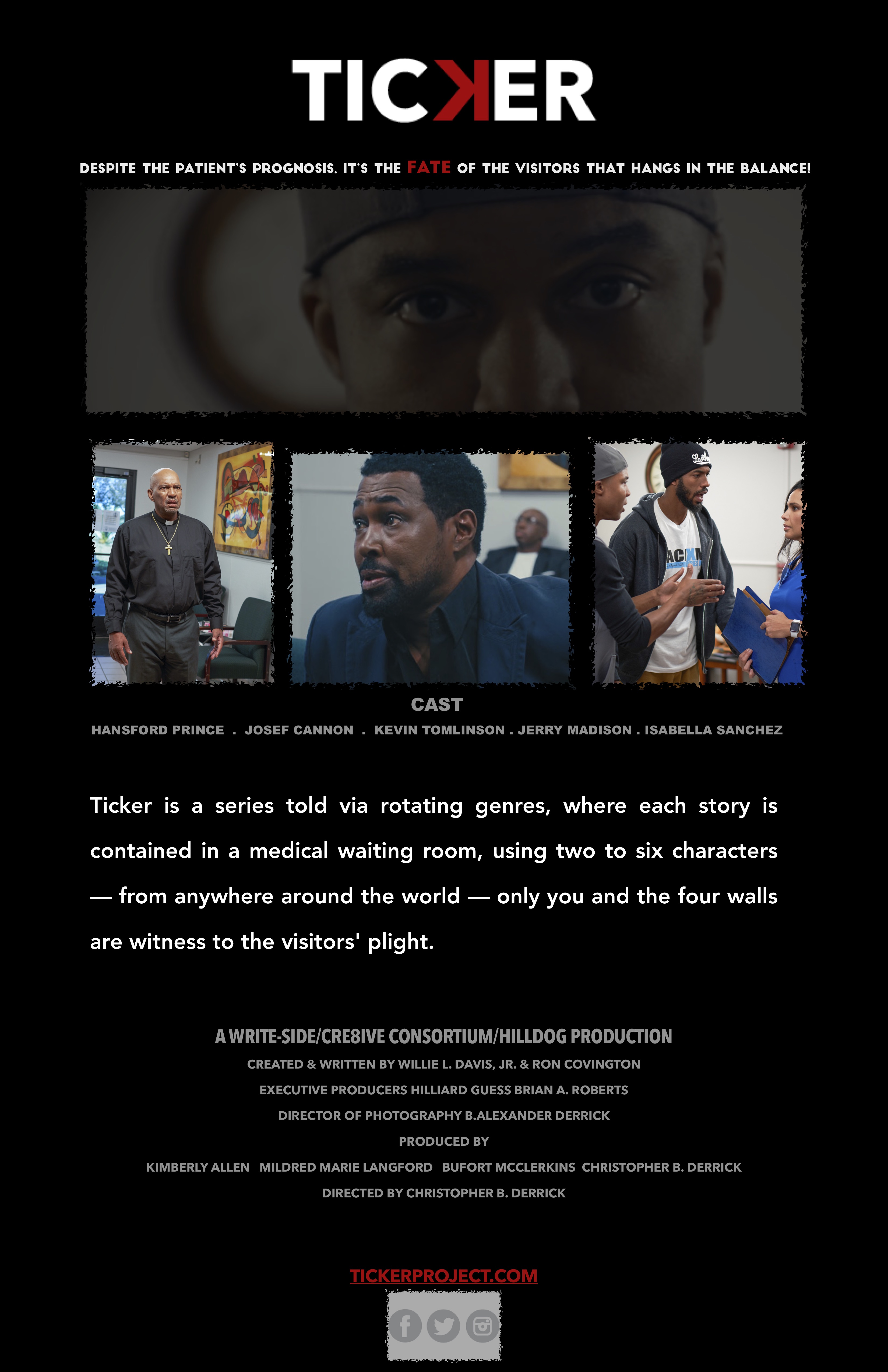 From day one of starting this project we not only knew that Ticker had legs, but those legs were ready to take off running. After shooting "A G-Thang" and "A Reckoning", a writers room was established and more episodes were written and added to this series. The room, helmed by Showrunner/Executive Producer, Hilliard Guess, was made up of writers - Willie L. Davis, Ronald T. Covington, Brian A. Roberts, Christopher B. Derrick, Mildred M. Langford , Kimberly Allen and Arielle Ramos.